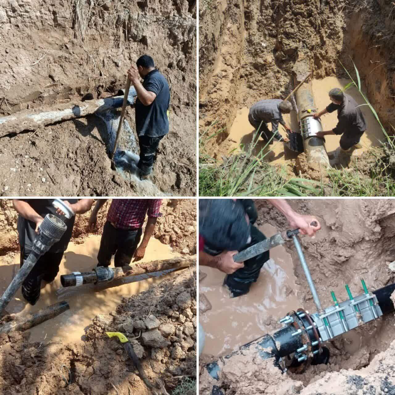 مرمت شکستگی ها در شبکه آب باوی و حمیدیه