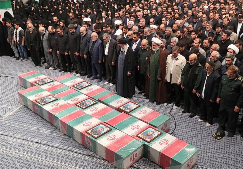 رهبر انقلاب بر پیکر هفت شهید راه قدس نماز اقامه کردند
