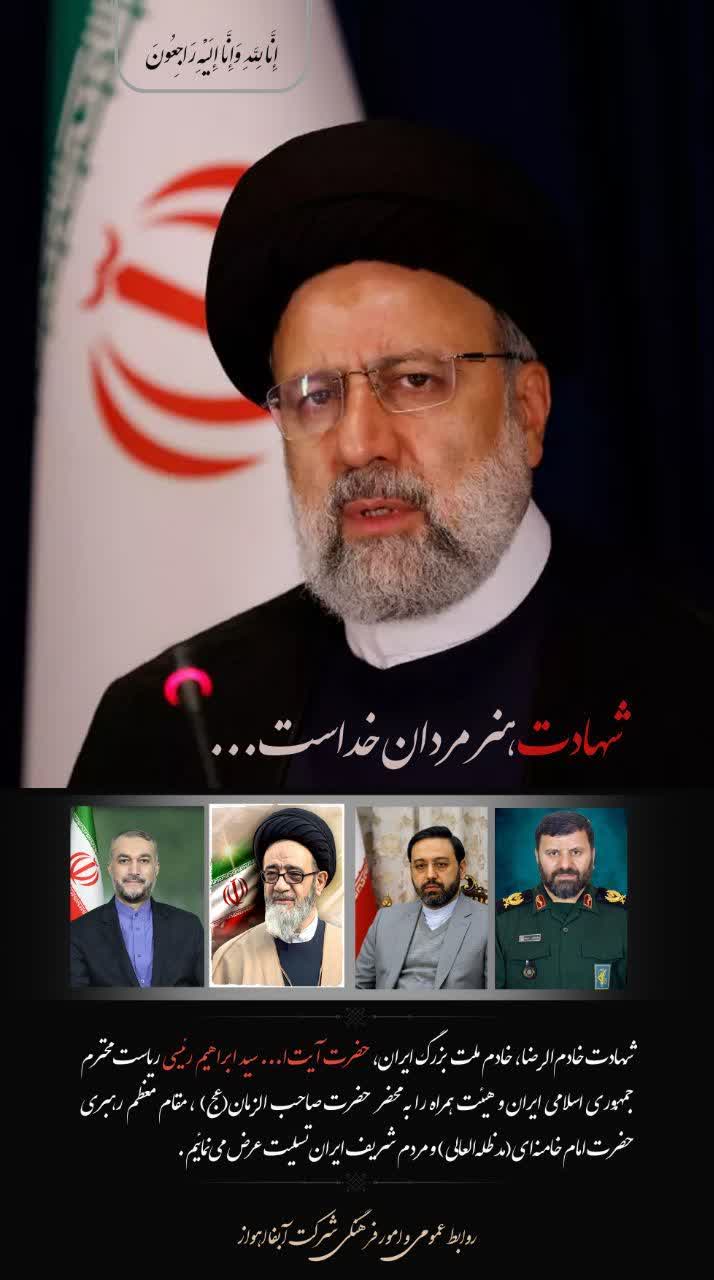 پیام تسلیت قائممقام شرکت آبفا اهواز در پی شهادت ریاست محترم جمهوری