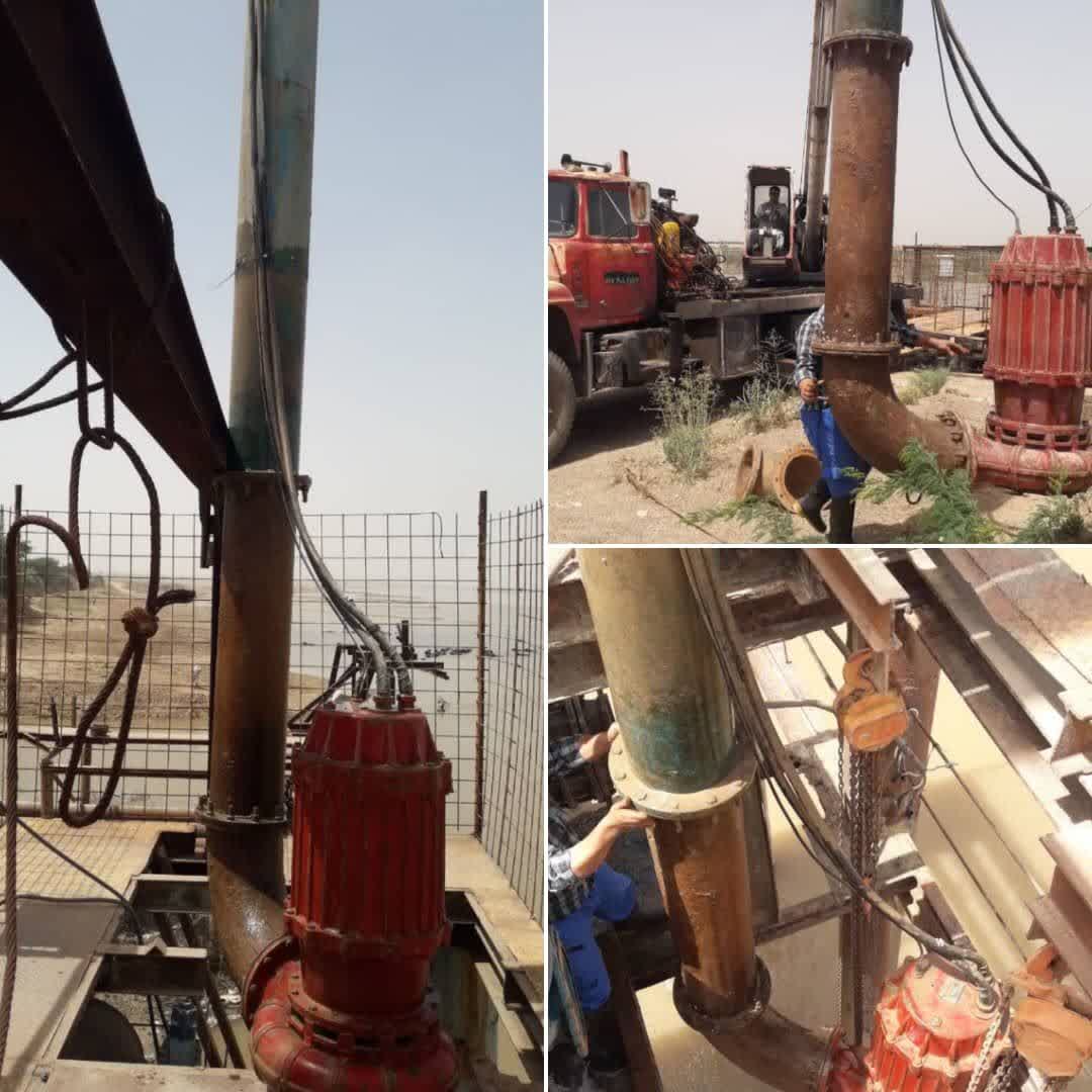 تعویض و نصب یک دستگاه الکتروپمپ شناور جدید در اسکله آبگیر تصفیه خانه شهدای کارون انجام شد.