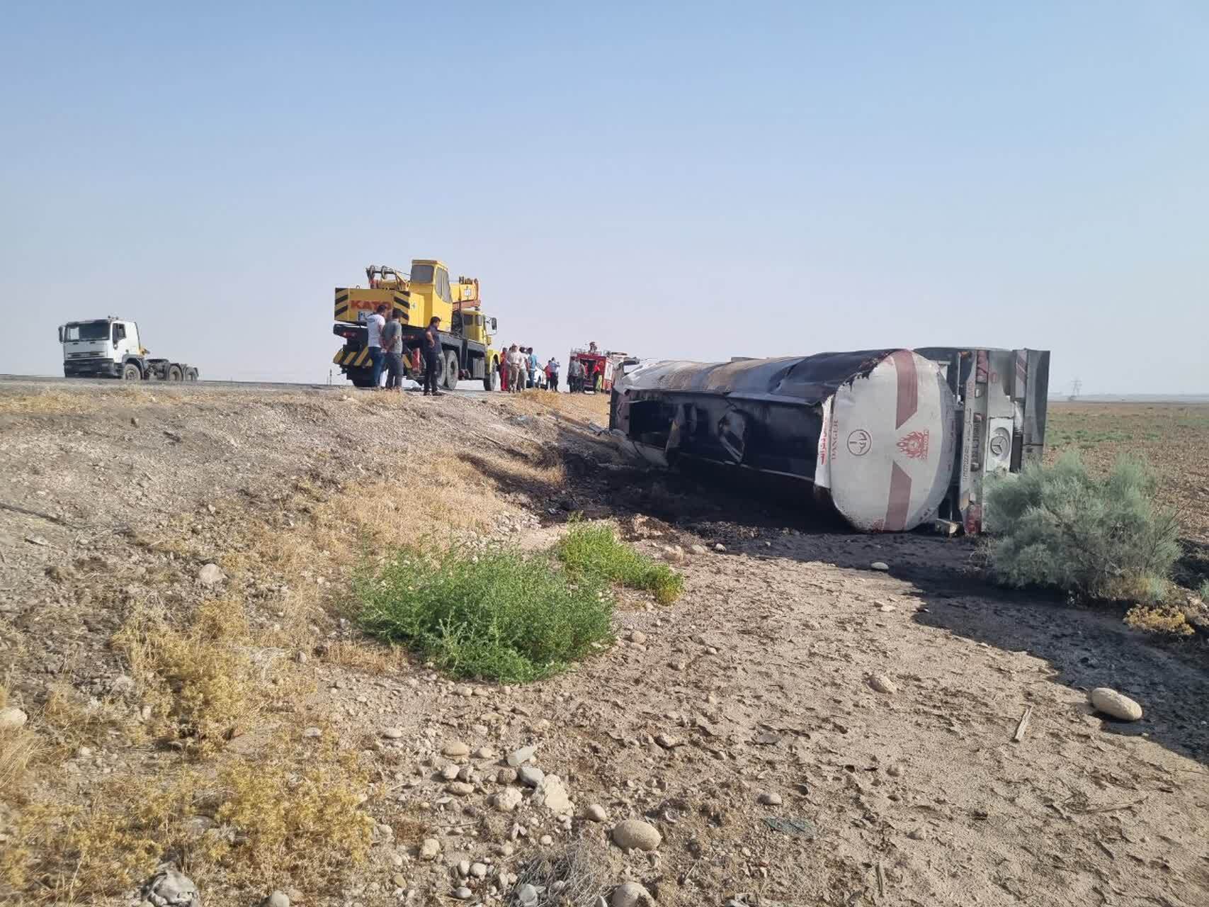 تلاش برای جابجایی تانکر سوخت حادثه دیده در شهرستان اهواز ادامه دارد.